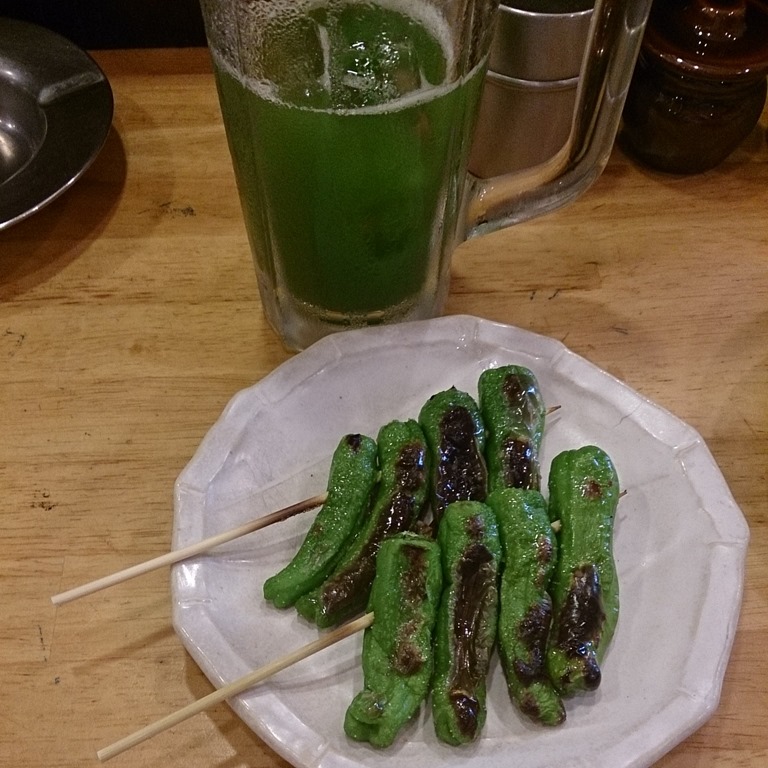 この「かぶら屋」で、抹茶ハイを3杯、チューハイを1杯、ポテトサラダ、串カツ、ししとう焼きを飲み食いして